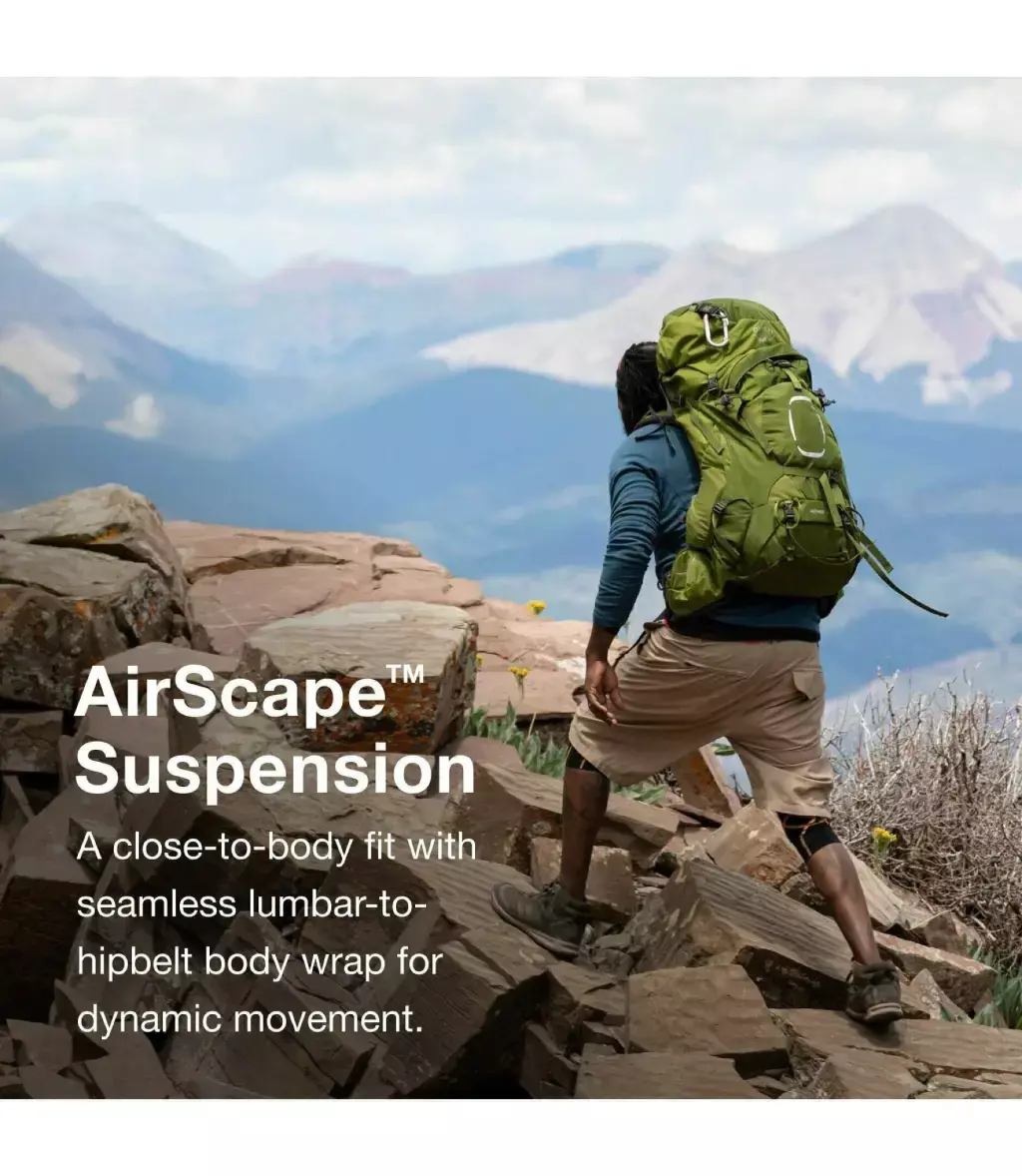 Mochila técnica de gran capacidad para travesías de varios días. Con ajuste ergonómico Fit-on-the-Fly™ y respaldo AirScape™, combina confort, ventilación y resistencia.