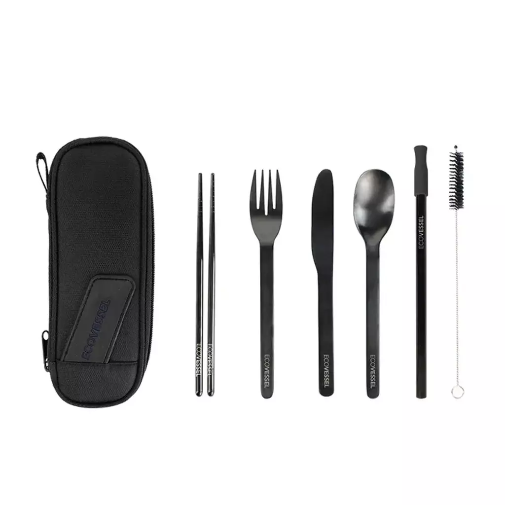 Nuestro juego de utensilios de acero inoxidable apto para uso alimentario de primera calidad incluye un tenedor, una cuchara, un cuchillo, palillos, una pajita con punta de silicona y un cepillo para limpiar pajitas. No importa cuál sea su gusto culinario, WanderWare lo tiene cubierto.